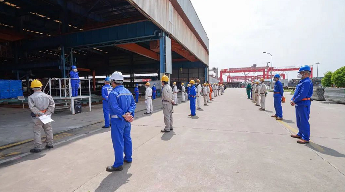 為了確保復工復產穩(wěn)妥有序,滬東中華嚴格按照崇明區(qū)政府“防控體系要到位”“全程閉環(huán)要到位”“分區(qū)管控要到位”“健康管理要到位”“環(huán)境消殺要到位”“防疫保障要到位”“應急預案要到位”“獎懲處罰要到位”的“八個到位”要求,成立了疫情防控、復工復產、安全保障、生活保障等四個工作專班,全面實施監(jiān)督區(qū)域網格化管理,全力保障疫情防控和復工復產工作。同時,對員工進行上崗前的防疫教育、安全教育,進一步增強全員自我疫情防護和安全責任意識,提升安全健康防范能力,確保一方平安。