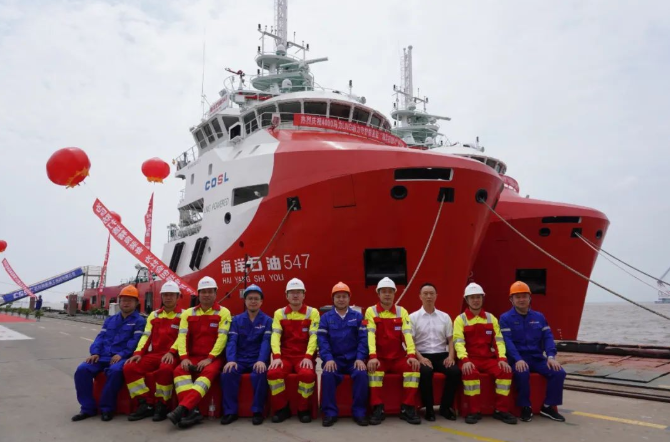 此次交付的“海洋石油542”和“海洋石油547”船是專門為我國(guó)海洋石油開發(fā)提供支持服務(wù)的船舶,可為海上油氣開發(fā)提供值班守護(hù)、貨物運(yùn)輸、救助以及對(duì)外消防等服務(wù)。該批船舶完全實(shí)現(xiàn)國(guó)內(nèi)設(shè)計(jì)、國(guó)內(nèi)建造,智能船舶系統(tǒng)、核心LNG儲(chǔ)罐及供氣系統(tǒng)、加注系統(tǒng)、主機(jī)、舵槳裝置均實(shí)現(xiàn)自主知識(shí)產(chǎn)權(quán)國(guó)產(chǎn)化,標(biāo)志著我國(guó)綠色化、智能化海工船設(shè)計(jì)、建造能力達(dá)到國(guó)際一流水平。