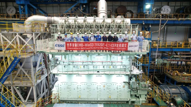 由中國船舶集團旗下中船動力集團研制的全球首臺新一代智能控制廢氣再循環(huán)(iCER)系統(tǒng)的雙燃料主機7X62DF-2.1,作為向二十大獻禮的重點產品,不僅豐富了我國雙燃料主機的型譜,提升了市場競爭力,也標志著中國繼全球最大船用雙燃料低速機X92DF之后,在船用低速雙燃料發(fā)動機研發(fā)制造領域保持新的優(yōu)勢,實現(xiàn)新的跨越。