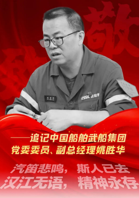 汽笛悲鳴,斯人已去;漢江無語,精神永存。中國船舶集團有限公司旗下武昌船舶重工集團有限公司黨委委員、副總經(jīng)理姚勝華,一位沉默、訥言的人,他把自己熬干了、燃盡了,默默地用理想和信念、用忠誠和熱血、用苦干與實干鑄就的,是一座偉大的豐碑!他的精神就像一面高高飄揚的旗幟,跨越時空,熠熠生輝!
