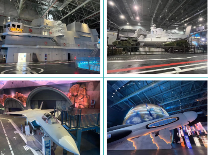 以先進(jìn)武器裝備為原型,館內(nèi)建有全比例、高比例航母艦島、核潛艇、奮斗者號載人深潛器、殲20飛機(jī)、運20飛機(jī)、天宮空間站、星火號宇宙飛船、99A坦克等,集成聲光電、虛擬現(xiàn)實、動感平臺等對標(biāo)國際一線主題樂園的體驗技術(shù),采用多種體驗形式和手段,編制精彩成長歷險故事,以主題游樂、研學(xué)教育、科普展示、文創(chuàng)商業(yè)等多種業(yè)態(tài),為游客帶來一場高科技、新技術(shù)的軍事主題沉浸體驗。