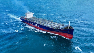 3月26日,中國船舶集團(tuán)旗下外高橋造船聯(lián)合中船貿(mào)易為TS Lines建造的7000TEU中型集裝箱船“德翔上?!碧柮桓叮患径韧瓿赡甓冉淮媱澋?2%。