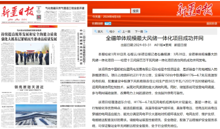 近日,中國船舶集團(tuán)旗下中船科技子公司中船風(fēng)電和哈密國投聯(lián)合開發(fā)的新疆哈密百萬千瓦風(fēng)儲(chǔ)一體化項(xiàng)目首臺(tái)風(fēng)機(jī)成功并網(wǎng)發(fā)電,央視《新聞聯(lián)播》、新華網(wǎng)和《新疆日?qǐng)?bào)》等紛紛關(guān)注報(bào)道。