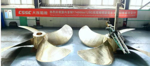 大連公司下屬大連船推成功交付自主開發(fā)設計制造的17.4萬立方米LNG運輸船雙尾鰭螺旋槳。