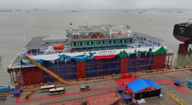 中國船舶集團(tuán)旗下廣船國際建造的半潛式深遠(yuǎn)海智能養(yǎng)殖旅游平臺“普盛海洋牧場6號”命名交付。