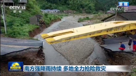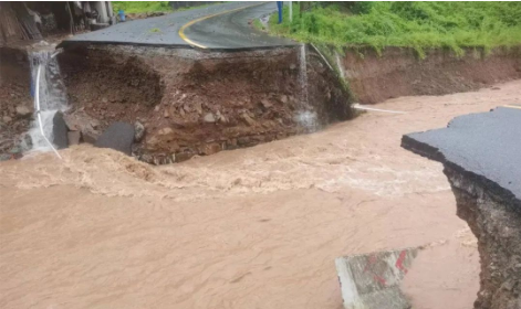 受近日強(qiáng)降雨影響,湖南省懷化市沅陵縣官莊鎮(zhèn)一處道路橋梁損毀。