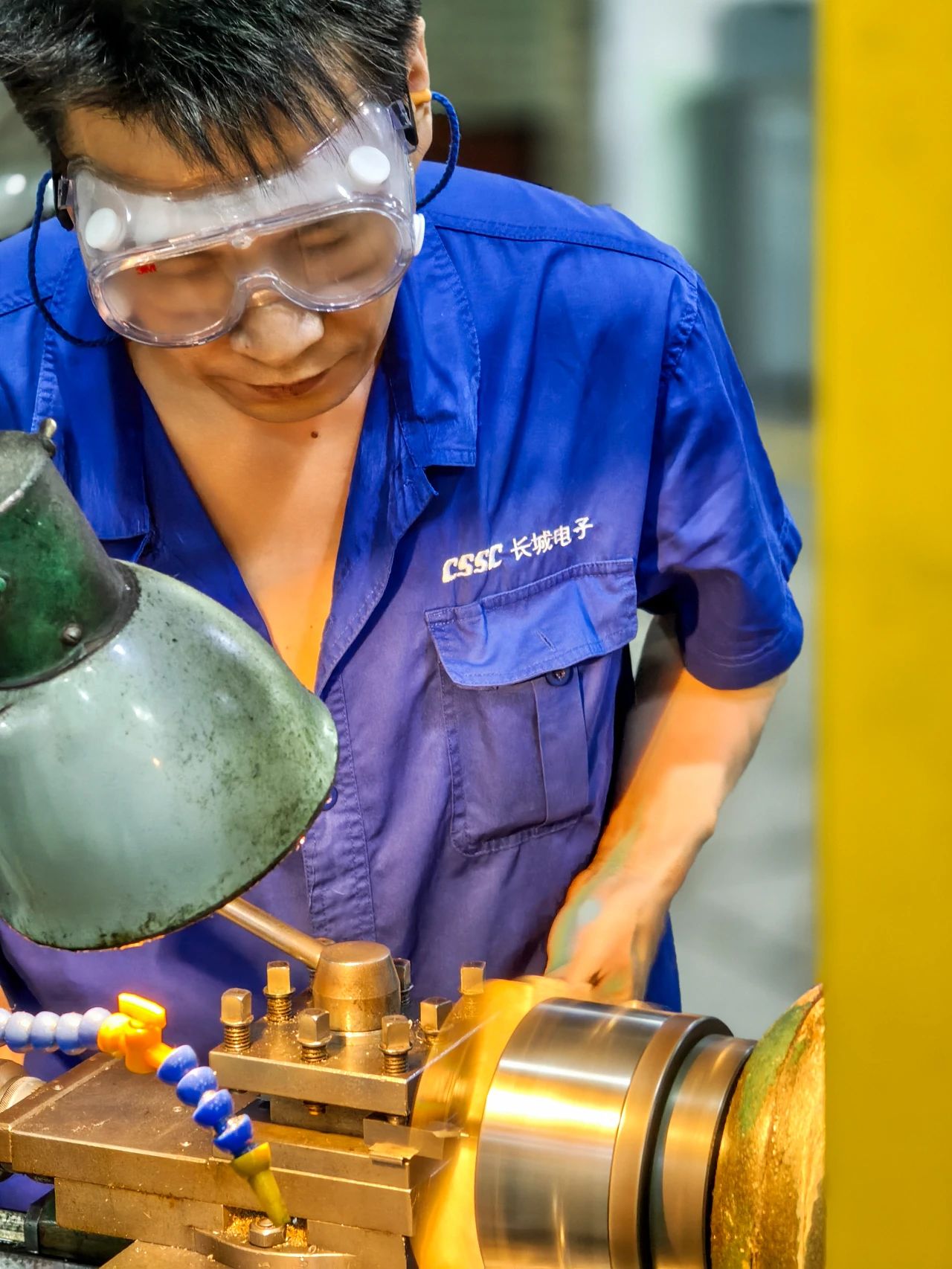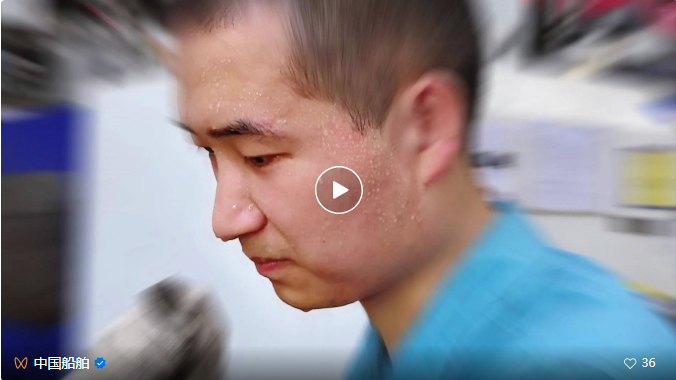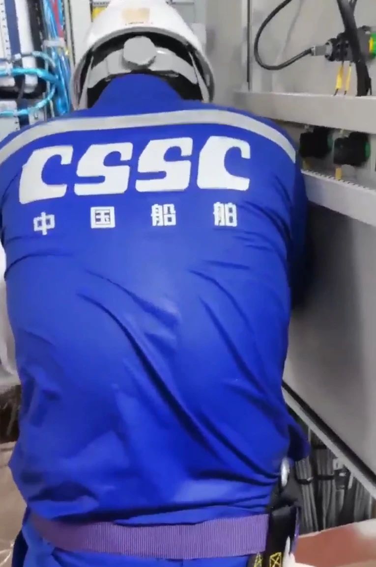 中船發(fā)動(dòng)機(jī)——調(diào)試人員頂著高溫在認(rèn)真安裝傳感器,汗水濕透了衣裳。