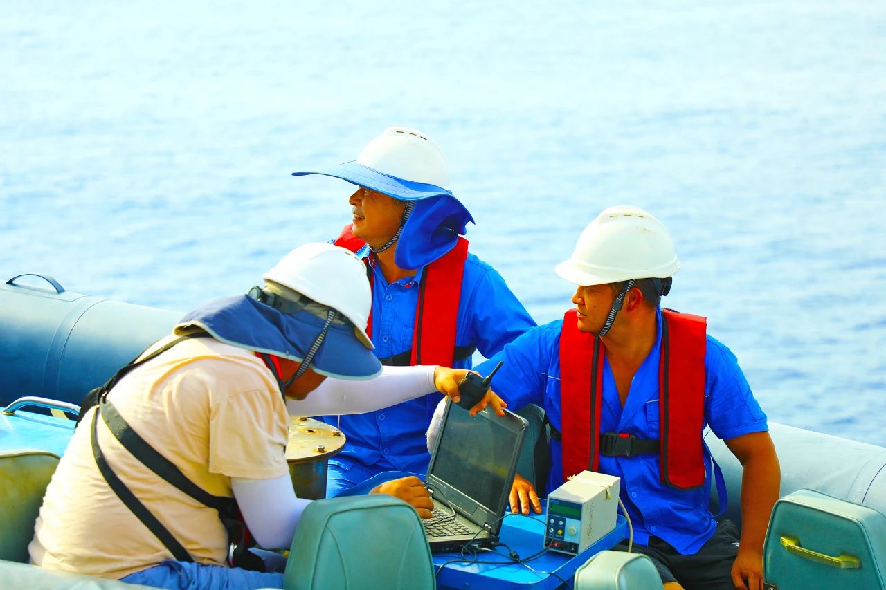 七〇二所——水池模型內(nèi)部,科研人員正忍受著近55℃高溫,開展試驗(yàn)前的設(shè)備安裝和調(diào)試工作。