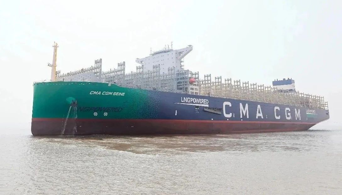 該船是法國達(dá)飛集團(tuán)在滬東中華訂造的4艘24000TEU級雙燃料動力集裝箱船的首制船,也是滬東中華繼2020年9月完工交付的全球首創(chuàng)23000TEU雙燃料動力集裝箱船的升級優(yōu)化型集裝箱船。該船總長399米,可一次裝下23872個集裝箱,包括2200個標(biāo)準(zhǔn)冷藏集裝箱,最大堆箱層數(shù)達(dá)24層,相當(dāng)于22層樓高度,是新一代海上“綠巨人”和“帶貨王”。