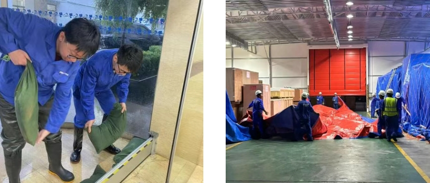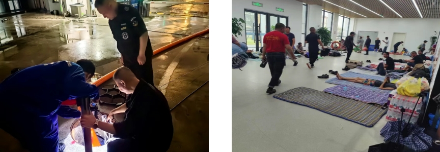 第一時(shí)間啟動(dòng)防汛防臺(tái)緊急預(yù)案,向全體員工發(fā)出動(dòng)員令。相關(guān)部門深入現(xiàn)場檢查設(shè)備設(shè)施,排除風(fēng)險(xiǎn)隱患。針對低洼易積水區(qū)域開展“竹節(jié)草”臺(tái)風(fēng)前安全專項(xiàng)檢查,確保室外門能關(guān)盡關(guān),同步組織排查所有易松動(dòng)和易掉落物料的清理;在樓宇門口設(shè)置防汛沙袋,做好防水工作;在動(dòng)力作業(yè)區(qū),開展變電站防汛沙袋布置和水位檢查等,確保現(xiàn)場安全。