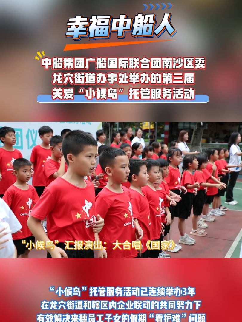廣船國際“小候鳥”托管服務活動已連續(xù)舉辦3年,切實有效解決了來穗員工子女的假期“看護難”問題,提高員工扎根南沙、逐夢南沙的歸屬感與幸福感,是廣船國際聚焦“幸福中船人”目標的生動實踐、“我為群眾辦實事”及“六船同心”黨建品牌“民生號”建設的重要內(nèi)容。