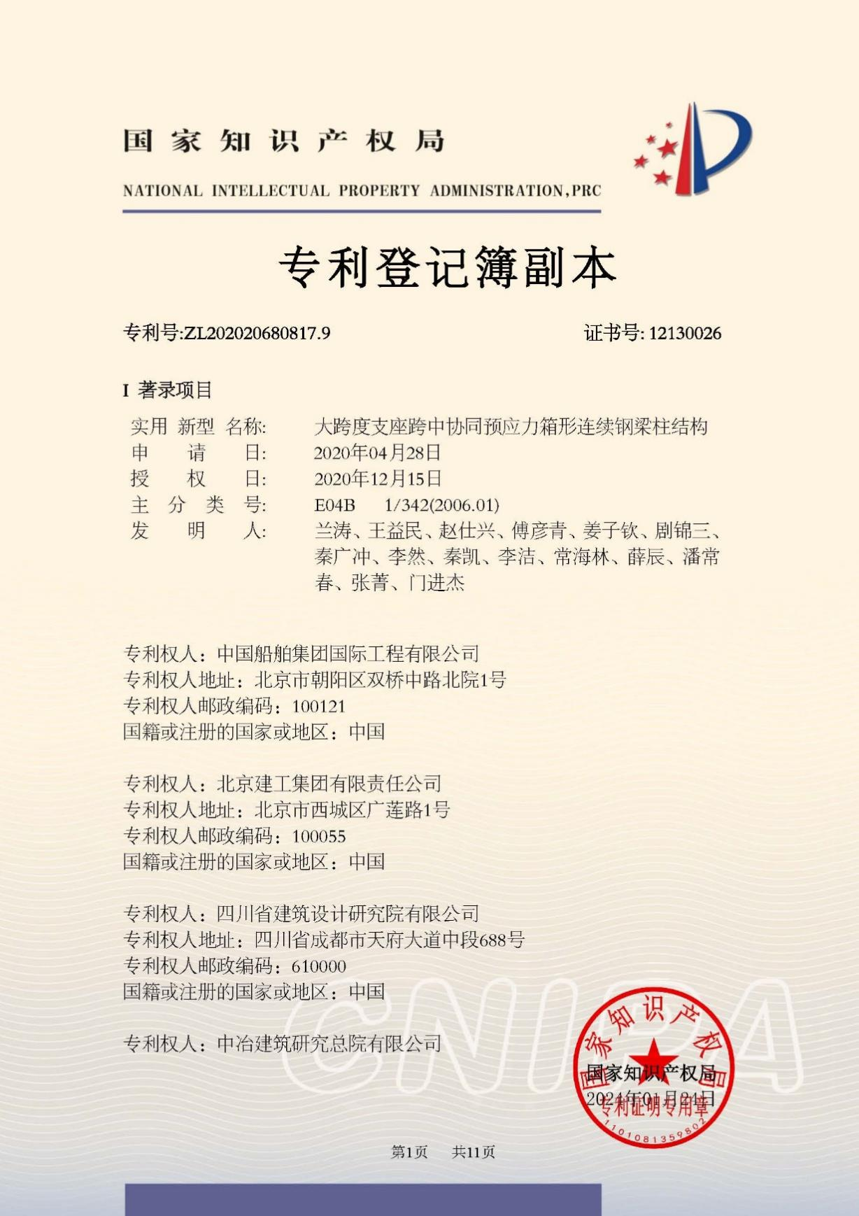 今年6月,國(guó)家知識(shí)產(chǎn)權(quán)局公布第二十五屆中國(guó)專利獎(jiǎng)授獎(jiǎng)決定,由中船集團(tuán)旗下中船國(guó)際工程主導(dǎo)申報(bào)的專利《大跨度支座跨中協(xié)同預(yù)應(yīng)力箱形連續(xù)鋼梁柱結(jié)構(gòu)》(專利號(hào):ZL202020680817.9)榮獲本屆中國(guó)專利銀獎(jiǎng)。該獎(jiǎng)項(xiàng)由國(guó)家知識(shí)產(chǎn)權(quán)局與世界知識(shí)產(chǎn)權(quán)組織聯(lián)合設(shè)立,是我國(guó)專利領(lǐng)域的最高榮譽(yù)。今天,讓我們走進(jìn)中船國(guó)際工程鋼結(jié)構(gòu)工程設(shè)計(jì)與研發(fā)團(tuán)隊(duì),聆聽他們的奮斗故事。