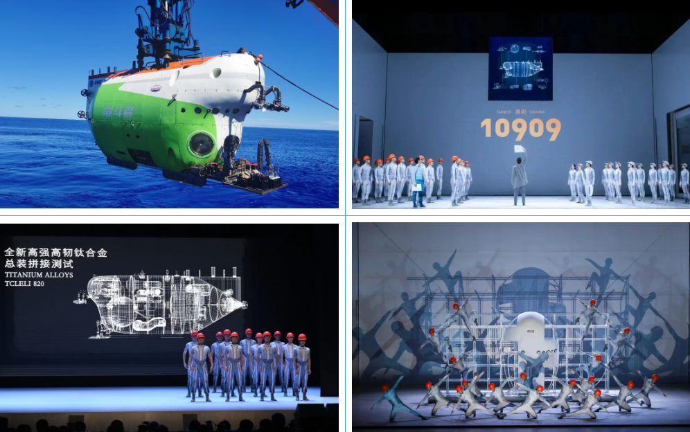 《10909》舞劇以七〇二所科研工作者為原型,以“奮斗者”號(hào)全海深載人潛水器在馬里亞納海溝首次探底10909米為題材,通過(guò)精湛的舞蹈語(yǔ)言與創(chuàng)新的舞臺(tái)表現(xiàn),生動(dòng)再現(xiàn)“奮斗者”號(hào)全海深載人潛水器研制、下潛、海試的奮斗過(guò)程。該劇先后獲評(píng)第十四屆全國(guó)舞蹈展演優(yōu)秀劇目、國(guó)家藝術(shù)基金2024年度資助項(xiàng)目、2022年江蘇省重大題材文藝創(chuàng)作項(xiàng)目等。