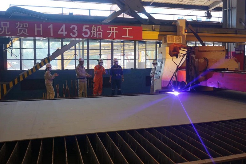 ????日前,中國(guó)船舶集團(tuán)旗下外高橋造船為PTM公司建造的阿芙拉型油船順利開工。受疫情影響,船東駐廠組代表無法到場(chǎng),特意委托英國(guó)勞氏船級(jí)社(LR)代表驗(yàn)收開工鋼板情況、見證鋼板切割,并以“云簽字”的形式簽署了開工節(jié)點(diǎn)證書。