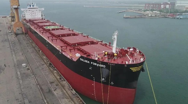 6月11日,由中國(guó)船舶集團(tuán)旗下大船集團(tuán)山船重工建造,中船貿(mào)易作為聯(lián)合賣方,為挪威Frontline公司打造的8.2萬(wàn)噸散貨船“GOLDEN FORWARD”號(hào)交付離廠。