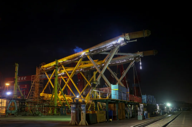 吸力筒導(dǎo)管架風(fēng)機(jī)基礎(chǔ)交付后將用于廣東省陽江市陽西縣沙扒灣300兆瓦海上風(fēng)電項(xiàng)目。