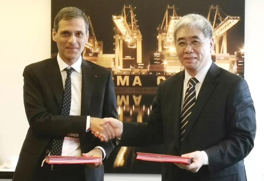 中國船舶集團(tuán)董事長雷凡培、達(dá)飛集團(tuán)董事長兼首席執(zhí)行官魯?shù)婪颉に_德互換簽約文本