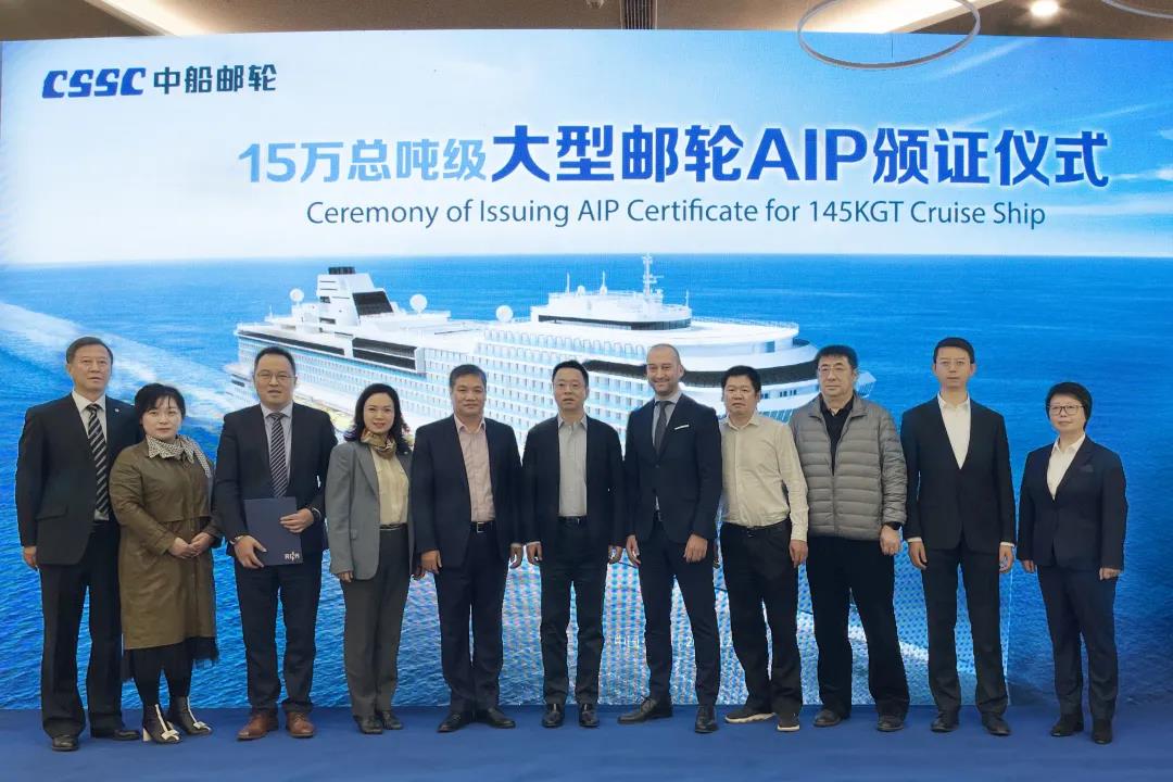 12月9日,中國船舶集團(tuán)旗下中船郵輪自主研發(fā)設(shè)計的15萬總噸級大型郵輪獲得意大利船級社原則性認(rèn)可(AIP)證書。這是中國首次獨立自主研發(fā)設(shè)計的完全擁有自主知識產(chǎn)權(quán)的大型郵輪,一舉打破國外在該領(lǐng)域長期技術(shù)封鎖和壟斷,開啟中國大型郵輪自主設(shè)計新時代。中國船舶集團(tuán)黨組成員、副總經(jīng)理盛紀(jì)綱出席授證儀式并講話。