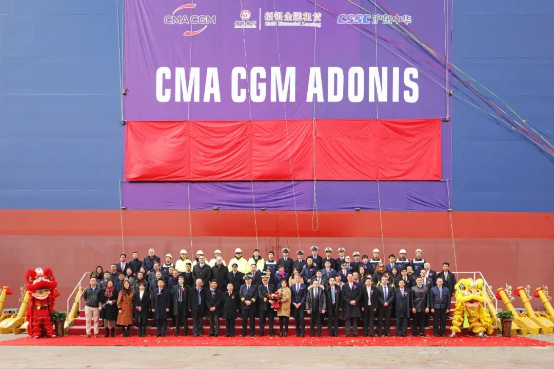 2月28日,中國(guó)船舶集團(tuán)有限公司旗下滬東中華造船(集團(tuán))有限公司聯(lián)合中國(guó)船舶工業(yè)貿(mào)易有限公司為法國(guó)達(dá)飛海運(yùn)集團(tuán)建造的15000TEU超大型集裝箱船“達(dá)飛·阿多尼斯”號(hào)在上海命名。這不僅是為達(dá)飛集團(tuán)量身定制的5艘常規(guī)動(dòng)力系列箱船中的最后一艘,實(shí)現(xiàn)了平均每月命名交付一艘的既定目標(biāo),也是繼由該公司建造的5艘全球首創(chuàng)最大、最先進(jìn)23000TEU雙燃料動(dòng)力集裝箱船之后,又一款被市場(chǎng)追捧的超大型集裝箱船項(xiàng)目完美收官,進(jìn)一步鞏固了其全球超大型箱船建造基地的地位。