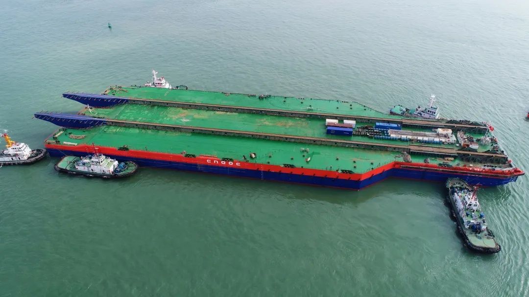 改造后的“海洋石油229”號(hào)導(dǎo)管架運(yùn)輸下水能力從30000噸提升至38500噸,可滿足高達(dá)302米、重達(dá)3萬(wàn)噸的“海基一號(hào)”裝船、運(yùn)輸?shù)刃枨蟆?