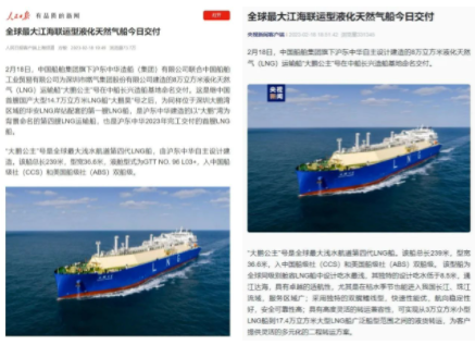 2月18日,中國船舶集團(tuán)旗下滬東中華聯(lián)合中船貿(mào)易建造的8萬立方米液化天然氣(LNG)運輸船“大鵬公主”號在中船長興造船基地命名交付。這是繼中國首艘國產(chǎn)大型14.7萬立方米LNG船“大鵬昊”號之后,為同樣位于深圳大鵬灣區(qū)域的華安LNG岸站配套的第一艘LNG船,是滬東中華建造的以“大鵬”灣為背景命名的第四艘LNG運輸船,也是滬東中華2023年完工交付的首艘LNG船,全面開啟LNG船產(chǎn)能倍增戰(zhàn)略實施新征程。
