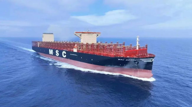 江南造船為地中海航運(yùn)建造的24000TEU集裝箱船“地中海梅特”號