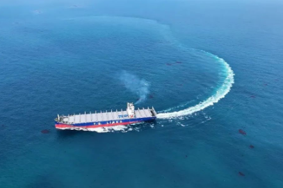 3月20日,外高橋造船同日完成兩大生產(chǎn)節(jié)點(diǎn),為TS Lines公司建造的第二艘7000TEU集裝箱船H1578試航凱旋,為RCL公司建造的首制7000TEU集裝箱船H1380開始出海試航。