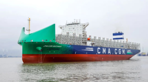 5月23日,由中國船舶集團旗下滬東中華聯合中船貿易為法國達飛集團建造的13000TEU液化天然氣(LNG)雙燃料動力集裝箱船系列4號船“CMA CGM SAOPAULO”號,在滬東中華長興島廠區(qū)命名交付。南美洲東海岸航線又將新添一艘中國“智”造的新一代綠色環(huán)保、高效節(jié)能型集裝箱船,為達飛集團箱船船隊綠色轉型發(fā)展貢獻新的中國船舶動能。
