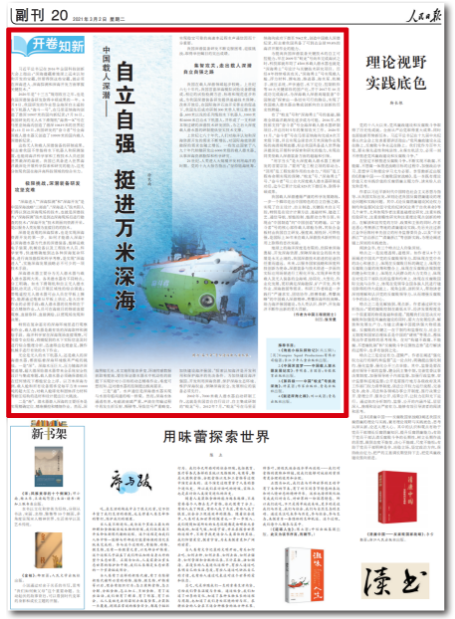 3月2日,人民日報 “開卷知新” 專欄刊發(fā)“蛟龍?zhí)枴笨傇O(shè)計師中國工程院院士中國船舶集團七〇二所研究員徐芑南文章《中國載人深潛——自立自強 挺進萬米深?!贰?/p>