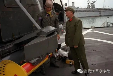 劉華清踮起腳尖參觀美國航母