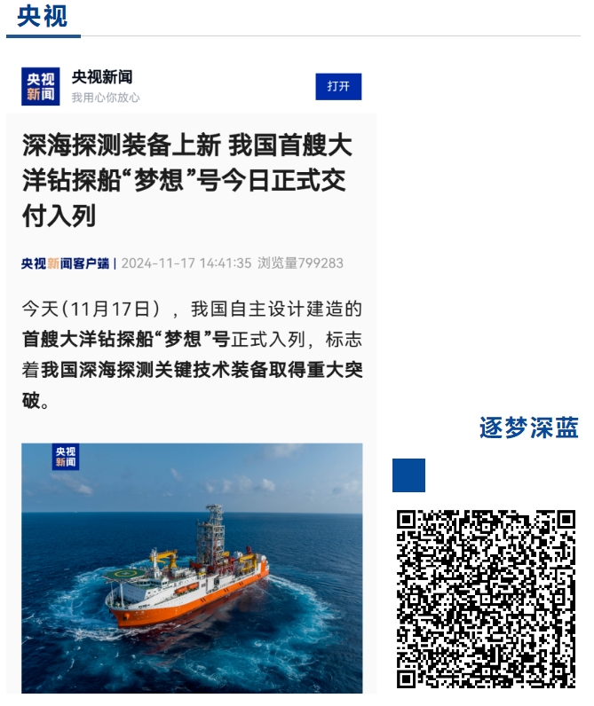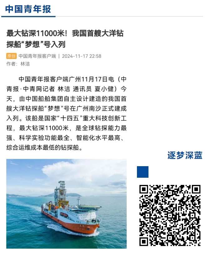 11月17日,中國船舶集團自主設(shè)計建造的我國首艘大洋鉆探船“夢想”號在廣州南沙交付入列,人民日報、新華社、央視等媒體的記者來到交付現(xiàn)場進(jìn)行報道 。