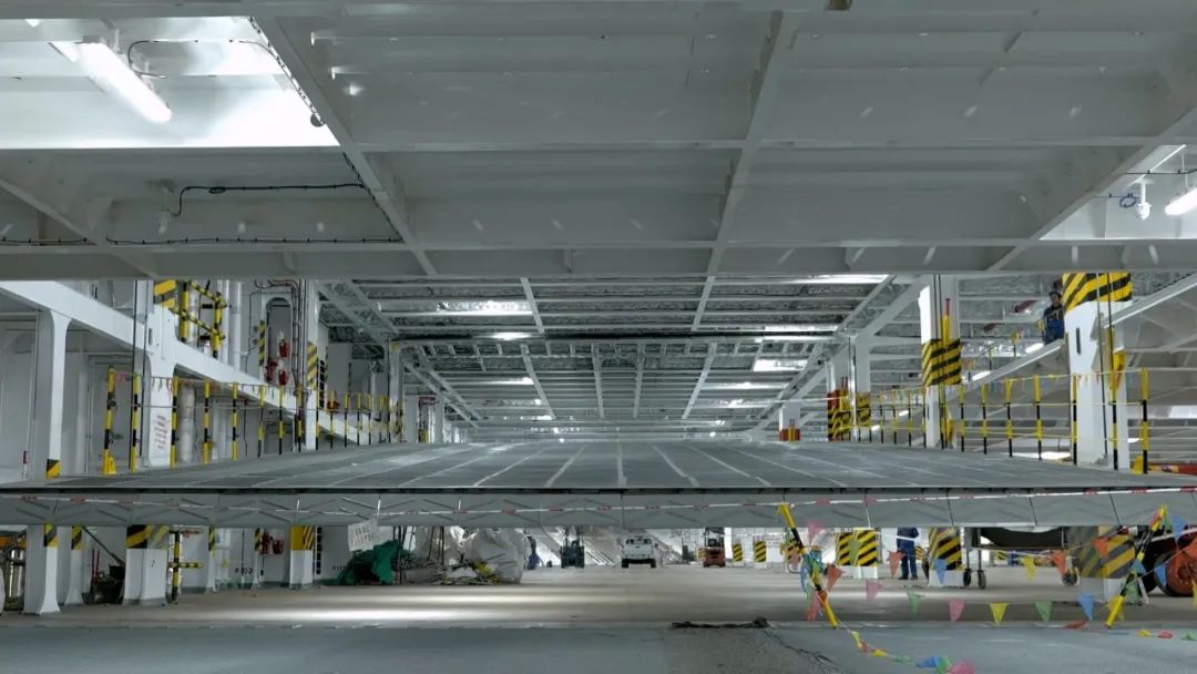 除了“薄”,船上承載車輛的甲板還有一個特點: 可根據(jù)汽車高度調(diào)整層高。 一艘船的滾裝設(shè)備和活動甲板多達(dá)100塊,船體搭載過程中任何一個環(huán)節(jié)出現(xiàn)偏差,都會導(dǎo)致活動甲板無法安裝。而廣船國際對船舶生產(chǎn)全過程實施嚴(yán)格的精度管理,目前已經(jīng)完全攻克相關(guān)技術(shù),真正實現(xiàn)了船舶工業(yè)體系的進(jìn)階。