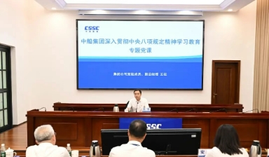 按照黨中央統(tǒng)一部署,根據(jù)中國船舶集團有限公司黨組學習教育工作安排,七一前后,中船集團黨組成員以分片區(qū)覆蓋、現(xiàn)場+視頻的方式講授深入貫徹中央八項規(guī)定精神學習教育專題黨課,圍繞學習習近平總書記關于加強黨的作風建設重要論述的收獲感悟,貫徹落實中央八項規(guī)定精神的成效經(jīng)驗,違反中央八項規(guī)定精神的危害,整改整治問題、推動改進作風的實際舉措等方面進行深入交流。