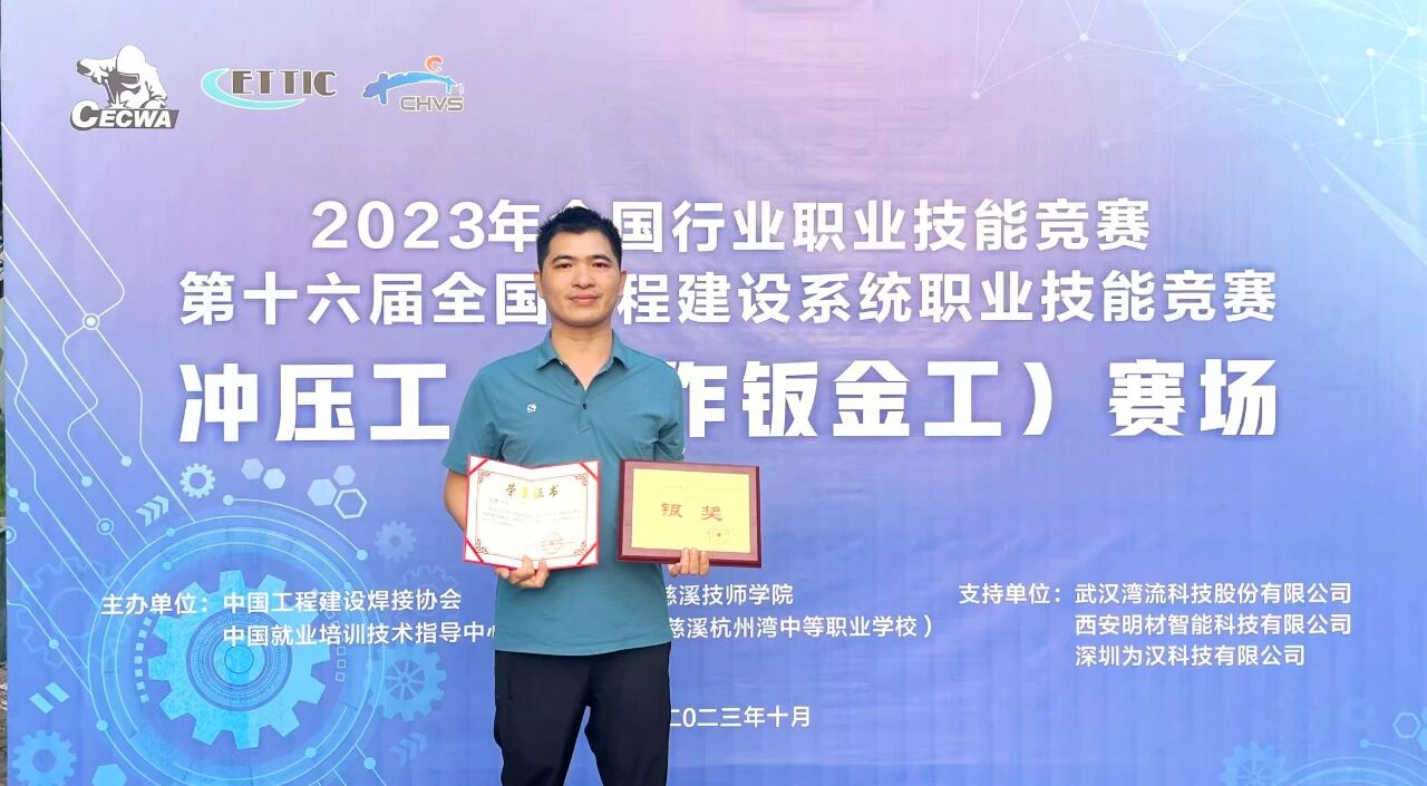 在技能競(jìng)賽舞臺(tái)上,鄒彬是公認(rèn)的“金牌教練”。自2014年起,他連續(xù)擔(dān)任第43至47屆世界技能大賽全國(guó)選拔賽建筑金屬構(gòu)造項(xiàng)目廣東省隊(duì)教練組長(zhǎng)。在他的悉心指導(dǎo)下,培養(yǎng)選手累計(jì)榮獲省級(jí)及以上獎(jiǎng)項(xiàng)21項(xiàng)。鄭江華等4人入選世賽國(guó)家集訓(xùn)隊(duì),謝藝科、吳志平等6人奪得省級(jí)職業(yè)技能大賽第一名,鄭江華等人獲評(píng)“全國(guó)技術(shù)能手”“廣東省技術(shù)能手”。2023年,他本人也在全國(guó)行業(yè)職業(yè)技能競(jìng)賽中斬獲“沖壓工·冷作鈑金工”項(xiàng)目銀獎(jiǎng),并獲評(píng)“全國(guó)工程建設(shè)系統(tǒng)技術(shù)能手”。