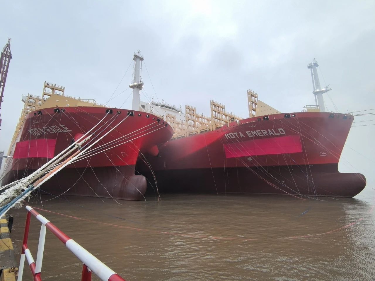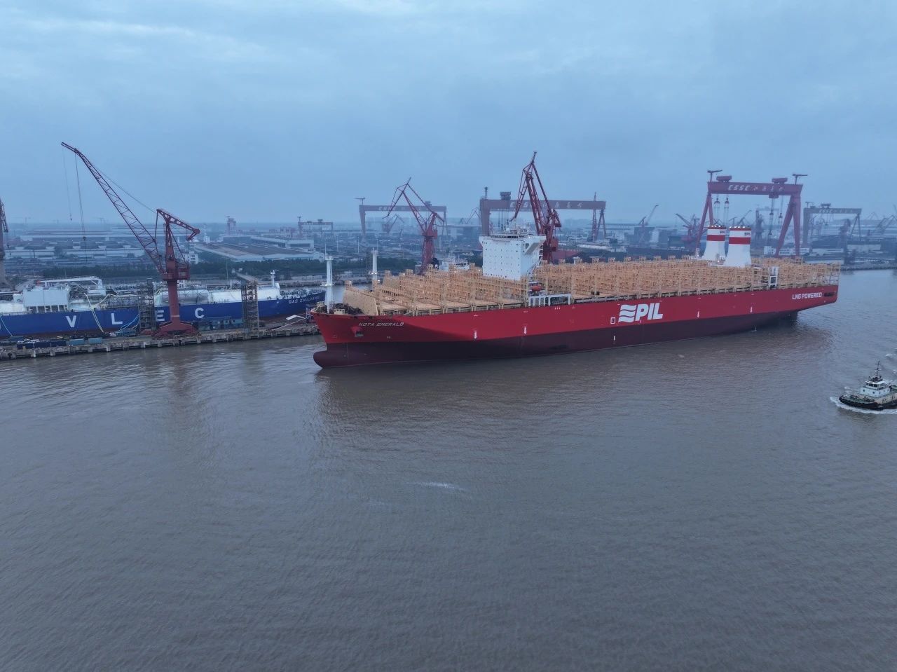 10月15日,中國船舶集團旗下江南造船聯(lián)合中船貿易為太平船務建造的14000TEU液化天然氣(LNG)雙燃料動力系列集裝箱船首制船“KOTA EAGLE(鷹城)”號和2號船“KOTA EMERALD(翠城)”號同日命名,其中“KOTA EAGLE(鷹城)”號于當日簽字交付。