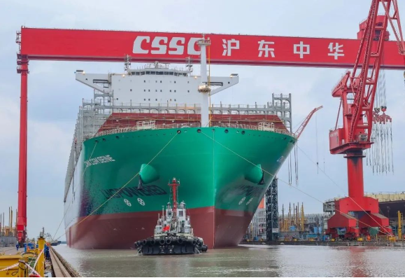 11月20日,由中國船舶集團(tuán)旗下滬東中華建造的全球最大24000TEU級(jí)液化天然氣(LNG)雙燃料動(dòng)力超大型集裝箱船首制船,提前10天順利出塢。